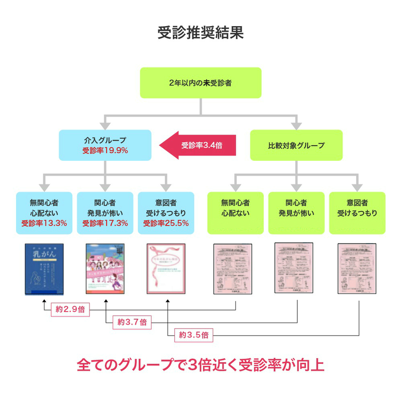 こうして、未受診のニーズに合わせた資料を受け取った介入グループ、従来の検診に関する基本的な資料を受け取った比較対照グループの受診率を比較し、ニーズに沿って開発された資料の配布が受診率の向上にどれほど影響を与えるかを調査しました。