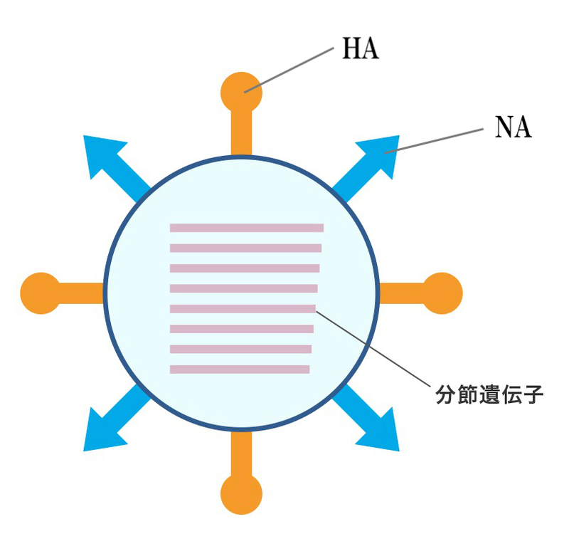 今までヒトの世界に入り大流行を起こしたA型ウイルスは、「H1」、「H2」、「H3」という種類です。