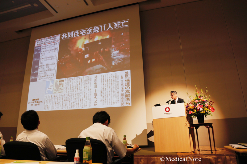 安藤高夫先生は、災害時における病院や施設における課題を提示されました。災害時には、災害拠点病院に指定されている急性期病院*だけでなく慢性期病院*、介護施設などにもたくさんの方々が押し寄せます。そのため、地域が一体となって災害に備えるべきであるとお話しされました。