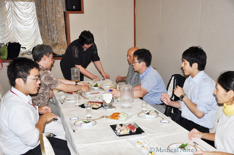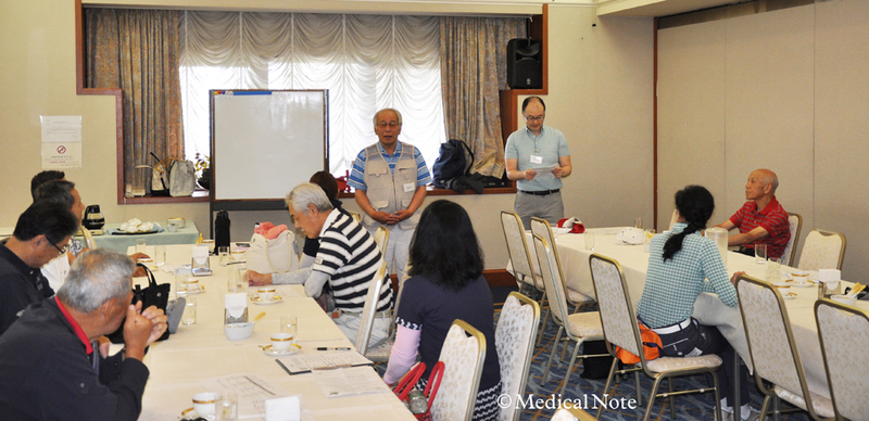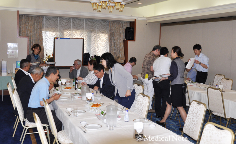 患者さんや病院スタッフ、医師会の方々は、プレーのことや日常的な健康管理の方法などについて、和気あいあいと歓談しました。
