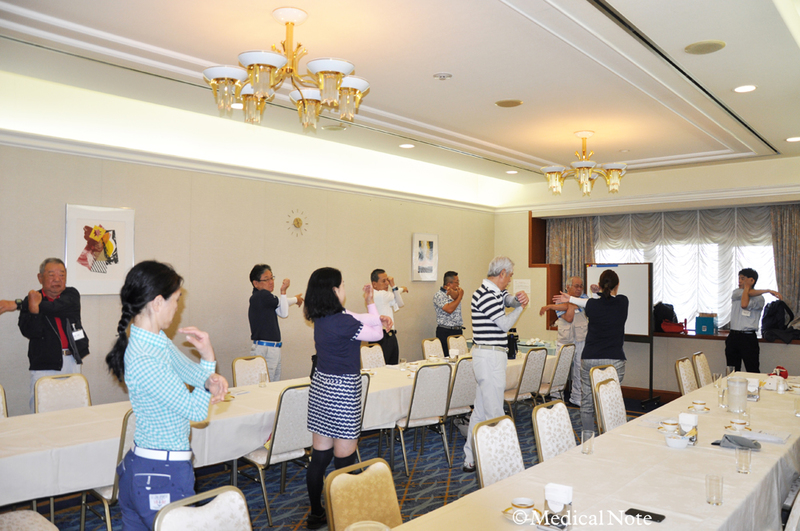 「本日はご多忙のなか多数のご出席を賜り、まことにありがとうございます。心臓リハビリテーション教室では、これまでウォーキングを主体とした運動療法を行ってきましたが、2015年からはゴルフを始めました。この度、第5回スポーツ心臓リハビリテーションゴルフを開催する運びとなりました。ご存知の通り、運動療法は、心筋梗塞や心不全などさまざまな病気を予防し、生活の質を改善する可能性があります。ぜひ、この教室を通じて、運動を習慣化していただけたらと思います。」