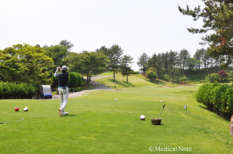 ゴルフのプレー前には、準備体操を行いました。記事1でご説明したように、高齢者の場合は運動時に転倒しやすいため、運動前のウォーミングアップは非常に重要です。