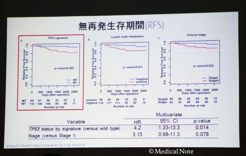またTP53 signatureは、免疫チェックポイント阻害剤に関わるタンパク質などの変異の発現性が高いことから、免疫チェックポイント阻害剤の治療効果を予測するマーカーとなる可能性もあるのではないかと考えています。