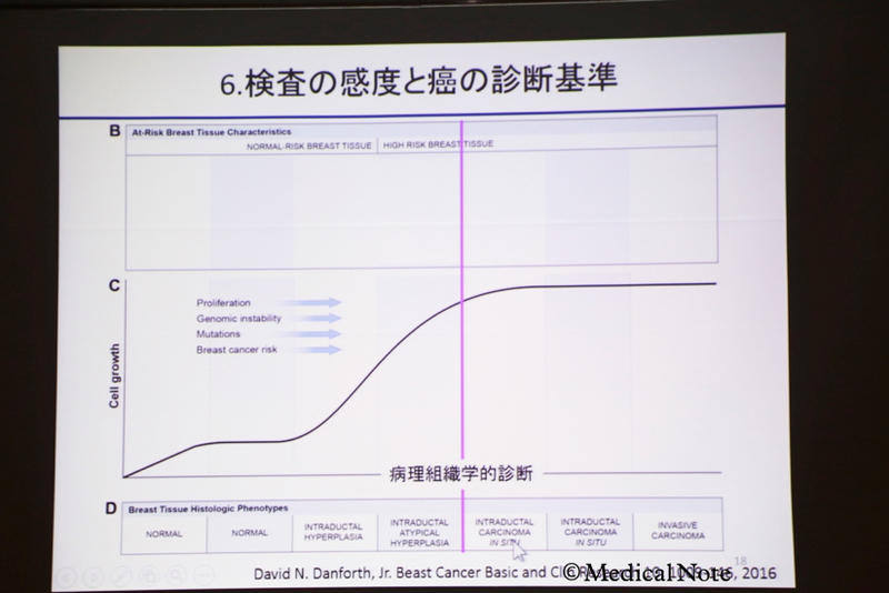 しかし、一方で、アクティブサーベイランス(積極的な経過観察)や手術を行わなくてもいいような低リスクの乳がんに対して不必要な治療が行われている現状もあり、このような過剰診断・過剰診療を防ぐためには、検査の感度を下げる必要もあるのではという議論もあるのです。