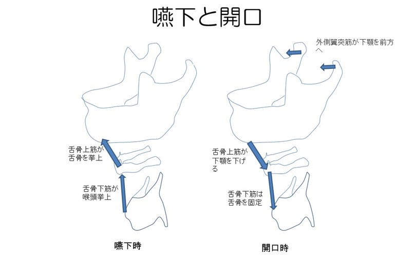 特に、のどぼとけを持ち上げる舌骨上筋(ぜっこつじょうきん)という筋肉は嚥下に大きく関わっています。最近の研究報告でも、舌の筋肉や舌骨上筋が加齢で落ちてくるというデータが出ています。