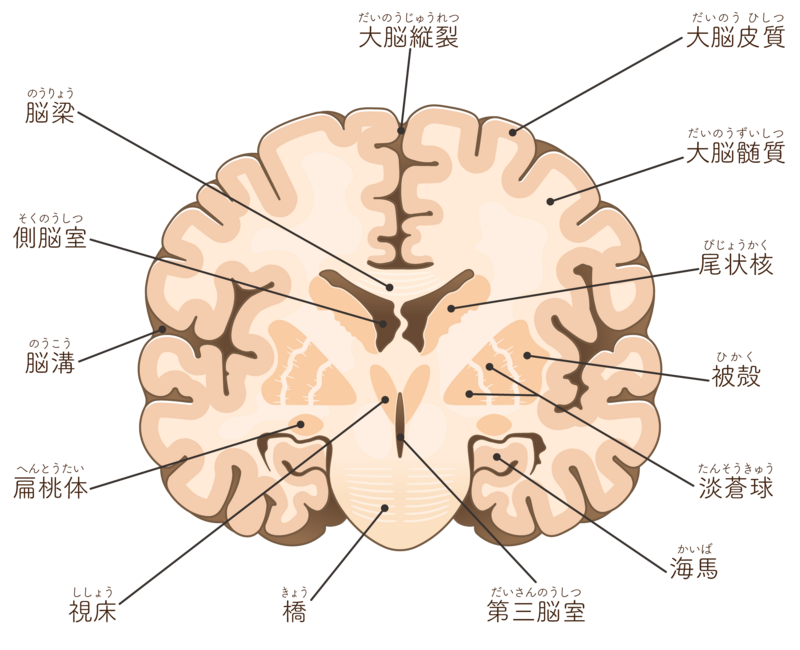 大脳皮質は部位によって機能が異なりますが、主に感覚や思考、言語、運動、記憶などを司り、大脳基底核は主に運動のスムーズな実行や姿勢の制御を司ります。そのため、大脳皮質基底核変性症では運動症状だけでなく、以下のようなコミュニケーションや性格に関する症状も出現します。