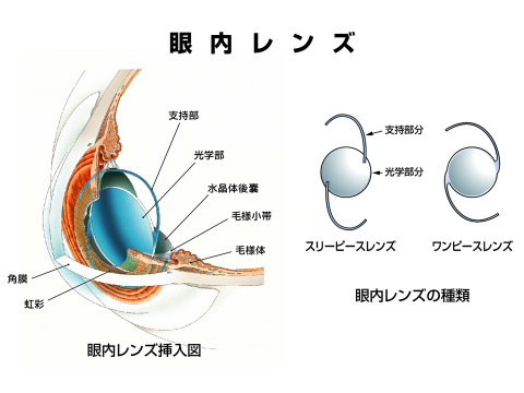 眼内レンズはその後、我々眼科医とメーカーの提携開発によって、柔らかいプラスチック型のレンズ(小さな傷から折り曲げるようにして眼内に挿入できる)に改良されました。このレンズは現在のグローバルスタンダードになっています。