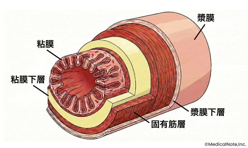 結腸がんが発症する原因は複数ありますが、多くの場合、結腸の粘膜にできた“腺腫”と呼ばれるポリープ(良性の腫瘍)から発生するといわれています。結腸がんは次第に結腸の外側へと広がっていき、進行するとリンパ節や肺、肝臓などに転移することがあります。