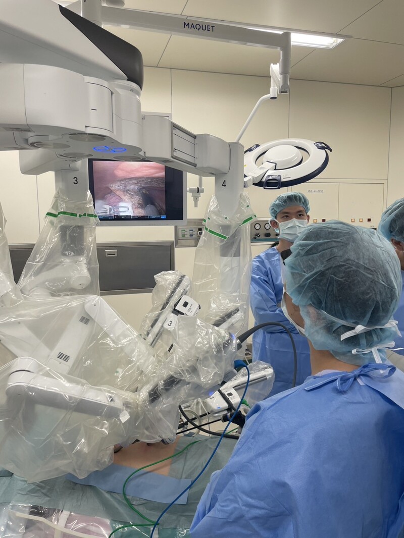 現在、呼吸器外科では手術執刀の資格を持つ医師は4名おり、そのうち私を含め2名は日本呼吸器外科学会認定のロボット支援手術プロクター資格を保有しています(2025年8月時点)。看護師や臨床工学技士もロボット手術に習熟しており、準備から手術まで非常にスムーズに行えるチーム体制を整えています。