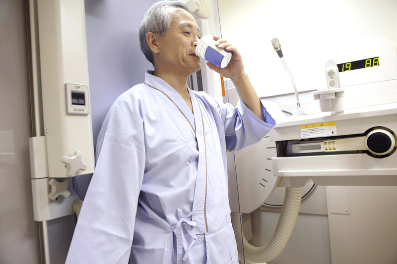胃X線検査は、発泡剤を飲んで胃をふくらませ、造影剤を飲み、胃の中の粘膜を撮影して行う検査です。検査当日は食事などの制限があります。検査に伴い、造影剤が誤って気管に入ってしまう誤嚥や、検査後の便秘などが起こる可能性があるため注意が必要です。