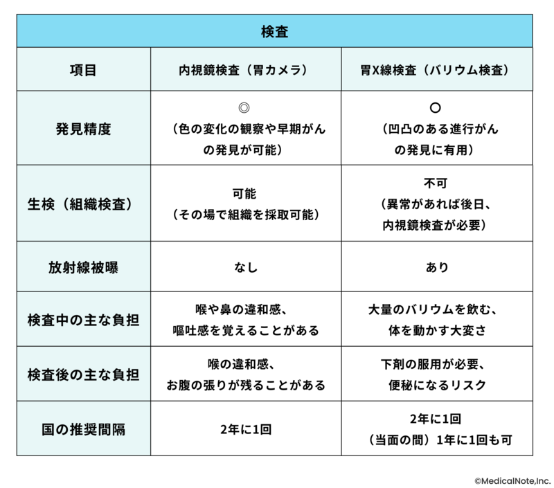 内視鏡検査は精度と確定診断まで行うことのできる拡張性で優れ、胃X線検査は手軽さで勝ります。ここでは、2つの検査の違い(メリット・デメリット)を比較します。