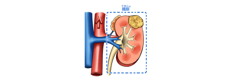 たとえば腫瘍が大きくて腎臓の半分ほどを占めるような場合や、あるいは腫瘍の位置が血管と非常に近いような場合には、腫瘍だけをくり抜くことが困難なため、腎臓を全摘するという選択をすることがあります。