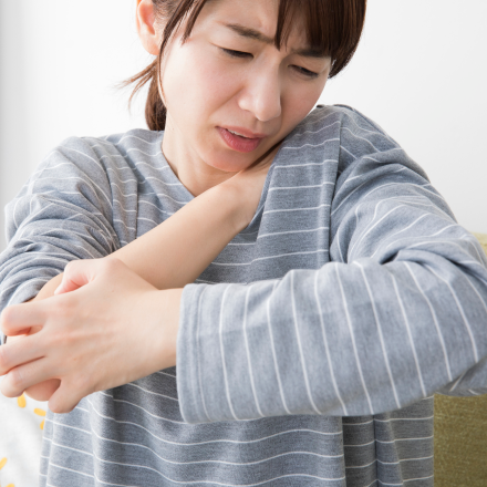 乾癬の主な症状は皮疹で、外からの刺激やストレスなどによって悪化する方もいます。乾癬の種類によっては全身に症状が現れることもあります。湿疹やじんましん、
