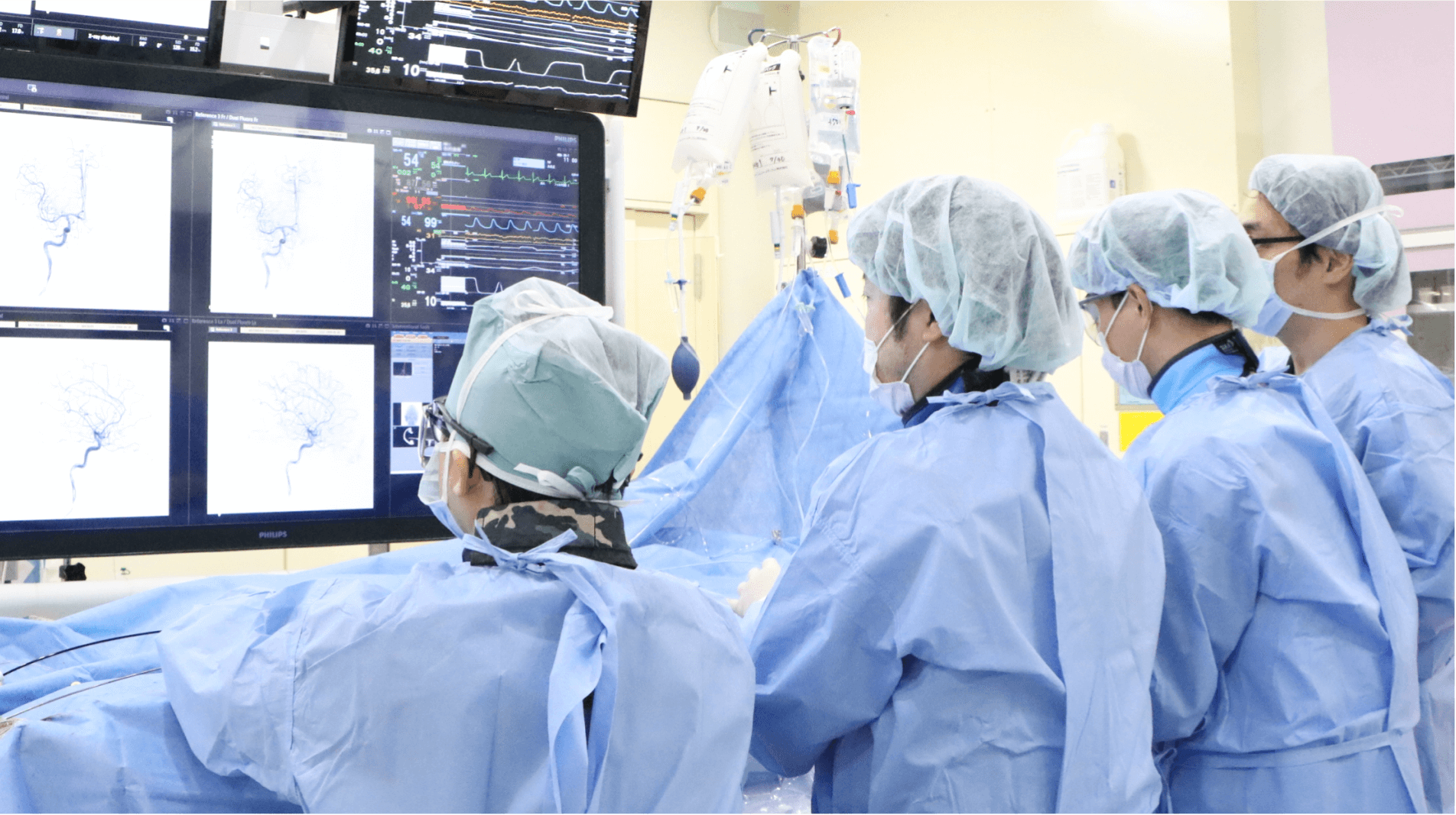 先述したとおり脳血管内治療科と脳神経外科の双方を備えていますので、多角的な観点で検討可能なうえ、ときにはそれぞれの治療を組み合わせるなどよりよい治療を追求できる環境があります。
