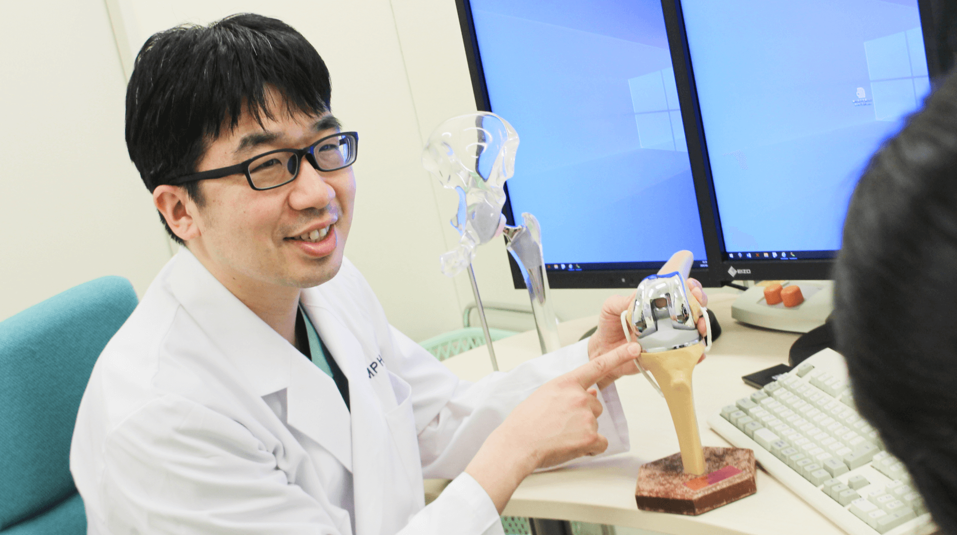 近年は医療の発展に伴って、術式や使用するインプラント(人工関節)にはさまざまな選択肢があります。当院では“患者さんが本当に幸せになる治療の提供”を目指すため、治療を検討する際には必ず「痛みが軽減したら何をしたいですか」と伺っています。答えはさまざまですが、その答え(希望)をもとに手術方法やインプラントの選定、リハビリテーションの計画を立て、望まれる生活を実現すべく尽力いたします。