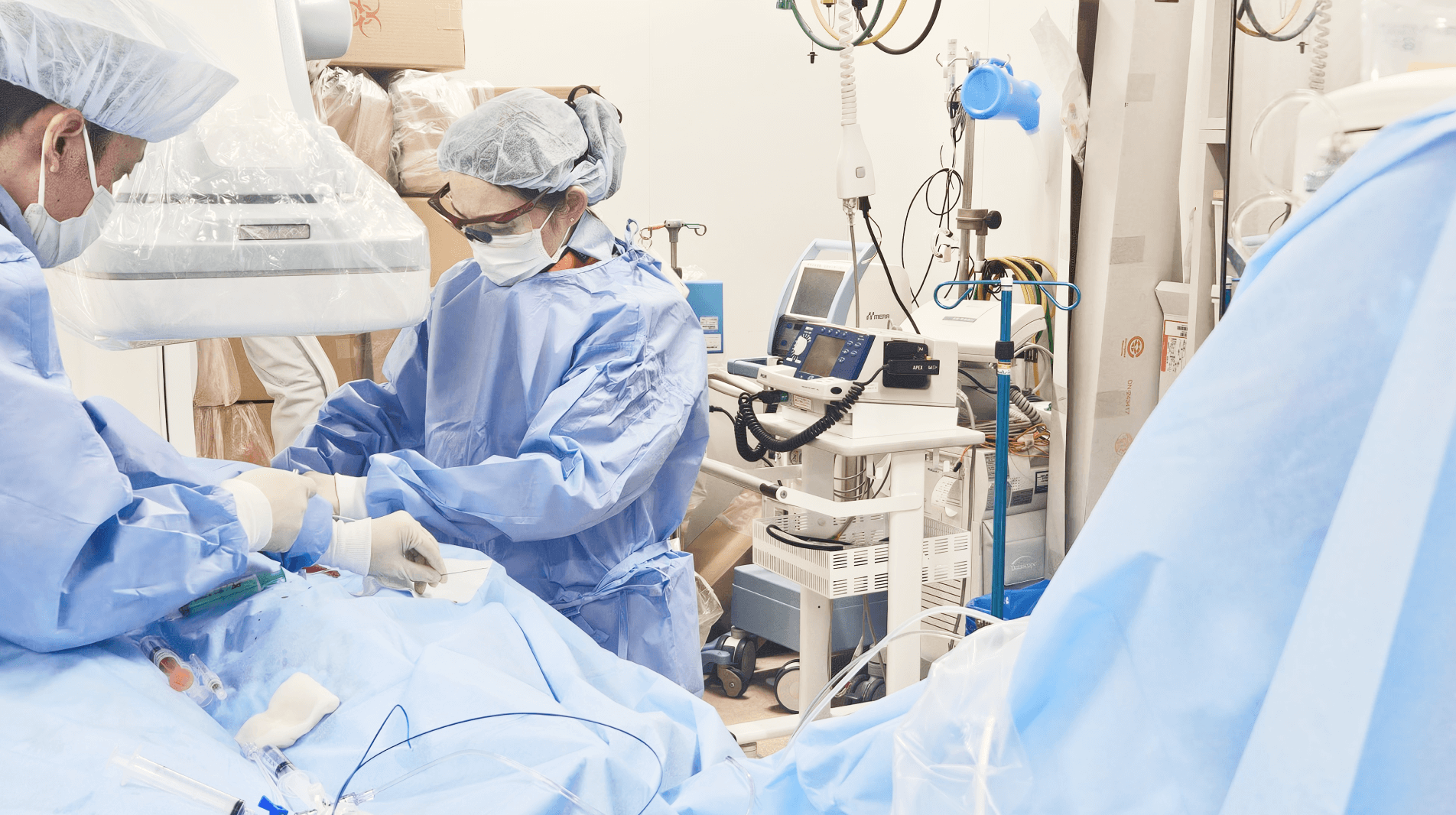 症状が重度でカテーテル治療が適用にならないと判断した患者さんには、冠動脈バイパス術を行っています。この手術は冠動脈の血流が悪くなった部位に、患者さんご自身の手や足、胸から採取した血管をつなげ、血液の迂回路を作るという方法です。特に心筋梗塞は時間との勝負となる病気です。よい経過を得るためには発症から90分以内の血流の再開が推奨されているため、当院では患者さんが治療室に入ってから30分以内の治療開始を目指します。可能な限り時間のロスを削減できるよう24時間365日、医師をはじめスタッフたちが常に体制を整えています。何か困った症状がみられたときはぜひ当院へいらしてください。