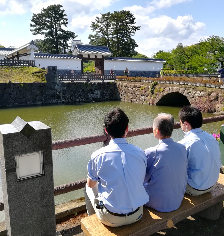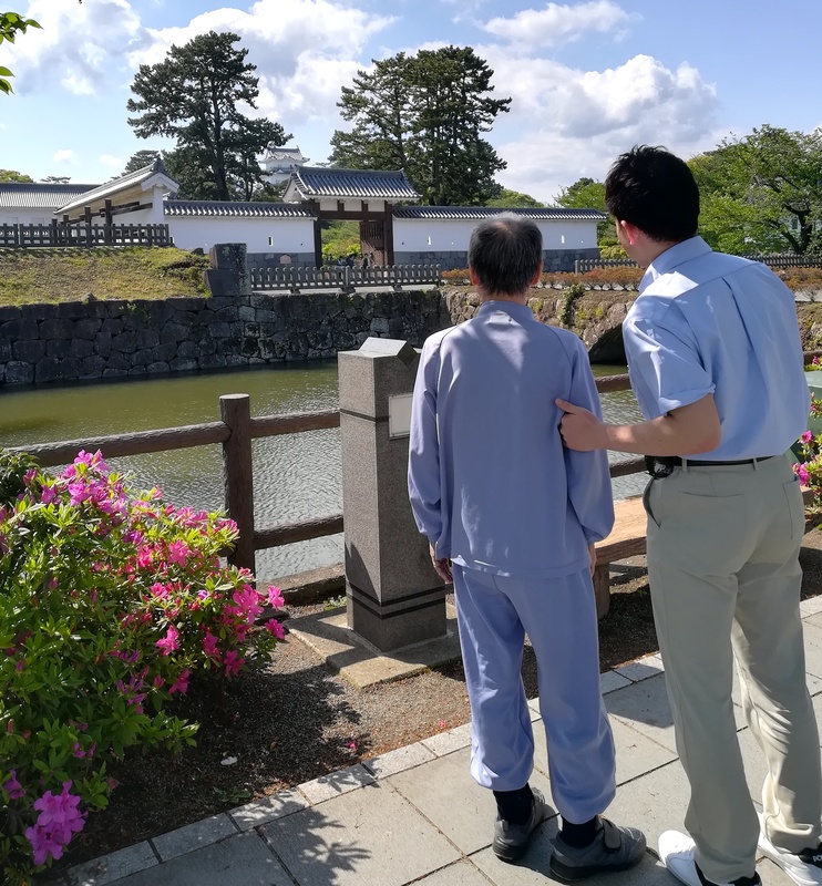 また、小田原城や海の近くであるという恵まれた立地環境を活かして、小田原城近辺や海水浴ができる御幸の浜を、入院患者さんがリハビリスタッフと一緒に散歩するという形式のリハビリを行っています。