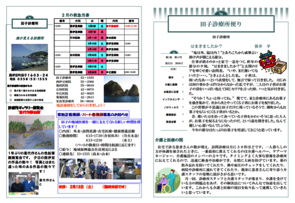また当診療所では定期的に「田子診療所便り」というリーフレットを発行しています。