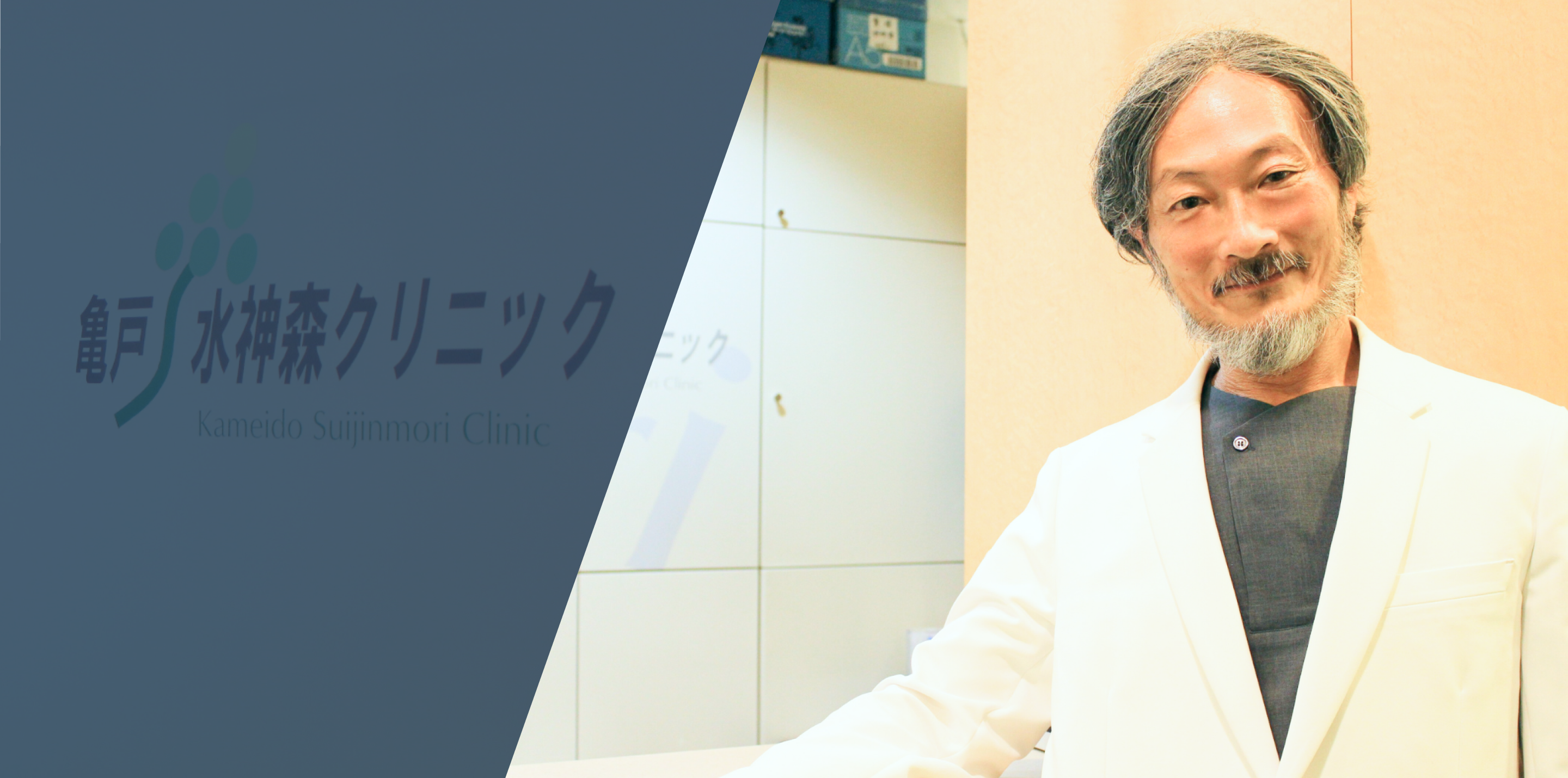 ここ亀戸は、当クリニックで整形外科を担当する妻が生まれ育った思い出の町です。私たち夫婦にとってゆかりあるこの土地で、これまでに培った専門的な経験を地域の皆さんのために生かしたいという思いから開院しました。この町に根を張り、皆さんの暮らしと健康を、夫婦二人三脚で支え続けてまいります。