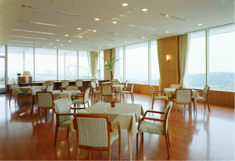 明るい日差しが差し込む喫茶室 写真提供:よみうりランド慶友病院