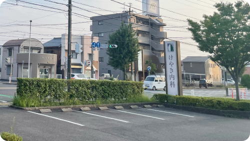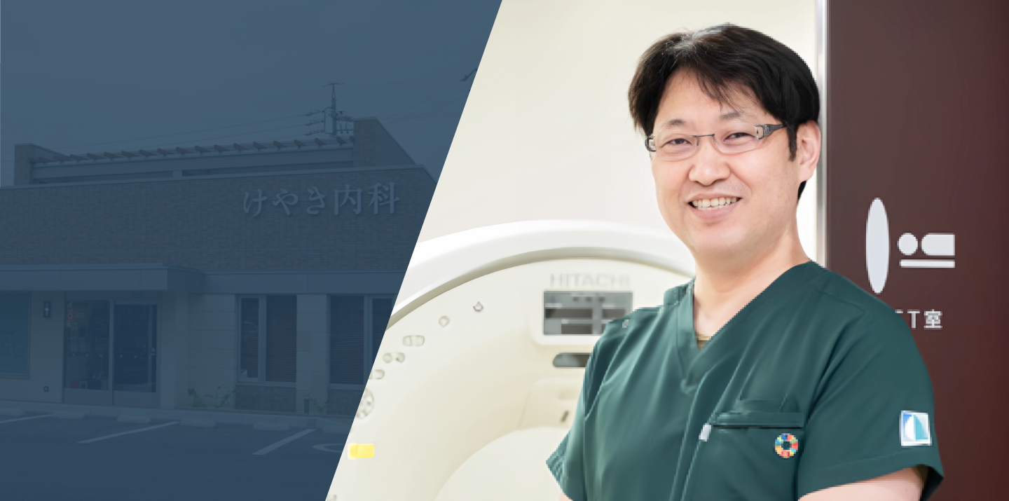 けやき内科は呼吸器・アレルギーの領域を中心に、地域の方々が安心して通い続けられることを目指した診療を行うクリニックです。「けやき内科」という名前は、名古屋市名東区の木である“欅(けやき)”にも由来していますが、「地域に根付く医療の実現」という思いを込めています。その思いを聞いてくださった地域の方に寄贈していただいた大きな欅の木は、クリニックの軒先で今も成長を続け、地域と共に歩んでいく当クリニックの象徴のような存在になっています。