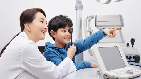 「低濃度アトロピン点眼*1)」や、夜間に特殊なコンタクトレンズを装用する「オルソケラトロジー*2)」といった治療を行っています。一時的な視力矯正ではなく、将来、近視が原因で起こり得るさまざまな目の病気を予防することを目的としています。