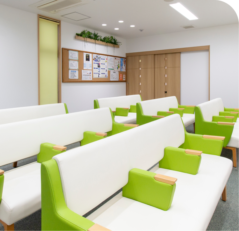 病院と聞くと緊張してしまう方も多いと思うので、クリニック内はできるだけリラックスできる空間にしたいと考えました。院内にはできるだけ癒しになるような観葉植物を置き、自然を感じられる雰囲気の中で落ち着いて過ごしてもらえるよう工夫しています。