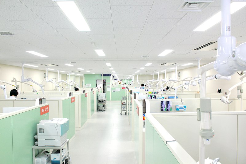 当院の外来診療棟の4階フロアはすべて歯科が診療にあたっており、病院の同じ建物に歯科があることで、院内の医科と歯科が患者さんの口腔ケアなどで連携を取ることができています。