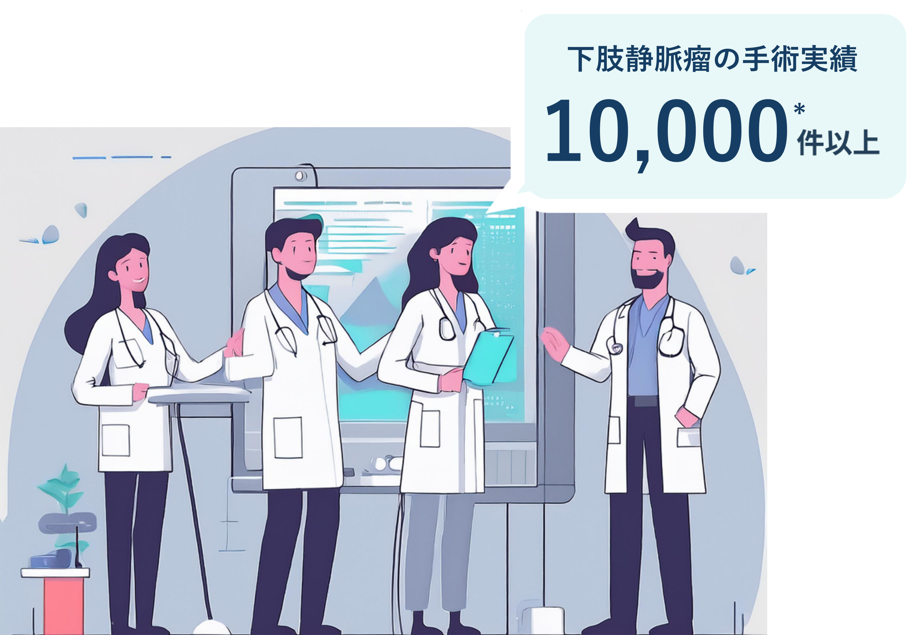 当クリニックは開院以来、下肢静脈瘤の手術実績が10,000件を超えます*。大学病院や救命救急センター、総合病院での診療経験を生かし、患者さん一人ひとりの症例に丁寧に向き合っています。一般社団法人日本脈管学会認定の脈管専門医としてカテーテル治療や手術も行ってきました。患者さんが安心して治療に臨めるよう努めています。