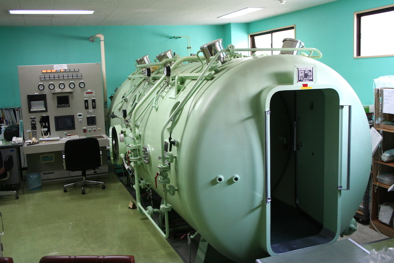 ⾼気圧酸素治療センターは、1978年に設⽴されました。⾼気圧酸素療法で使⽤する機器の内部気圧をコントロールすることにより、呼吸を通じて⾎液中に溶け込む酸素の量を増やし⾃然治癒を促進します。もともとは減圧症(潜⽔病)の治療として開発された医療機器であり、現在はさまざまな疾患の治療で効果を発揮しています。
