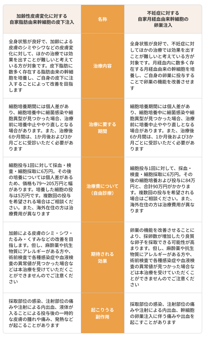 当クリニックで実施している再生治療は、すべて保険適用外の自由診療です。上記は一例ですが、詳細は公式サイトやご来院の際にご相談ください(記載内容は取材時点のものです)。
