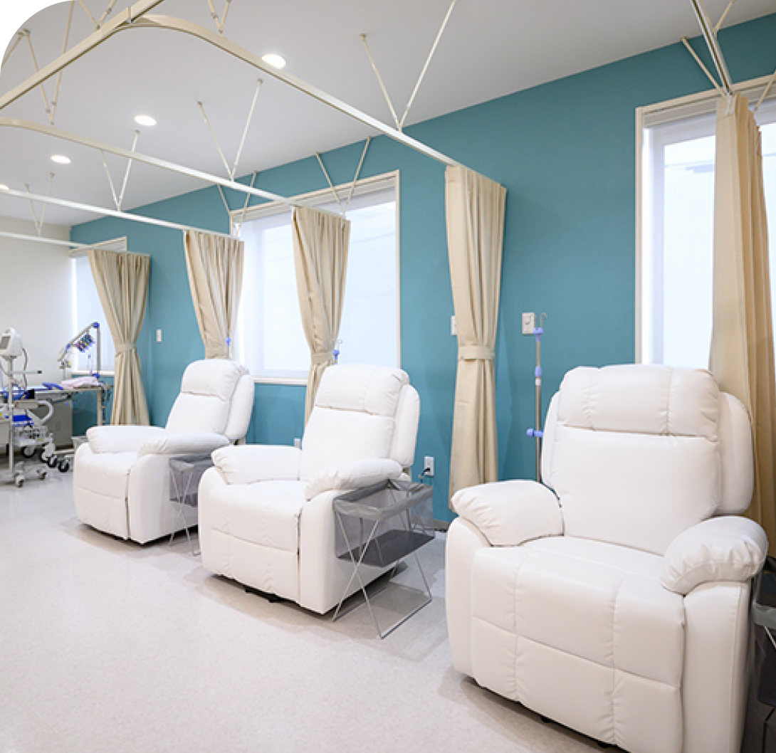 検査前の下剤服用などの準備(前処置)はトイレ付きの専用スペースで行い、検査中はご希望に応じて鎮静剤を使用します。スコープ操作も一つひとつ丁寧に行い、検査後は静かなリカバリーエリアでゆっくりお休みいただけます。