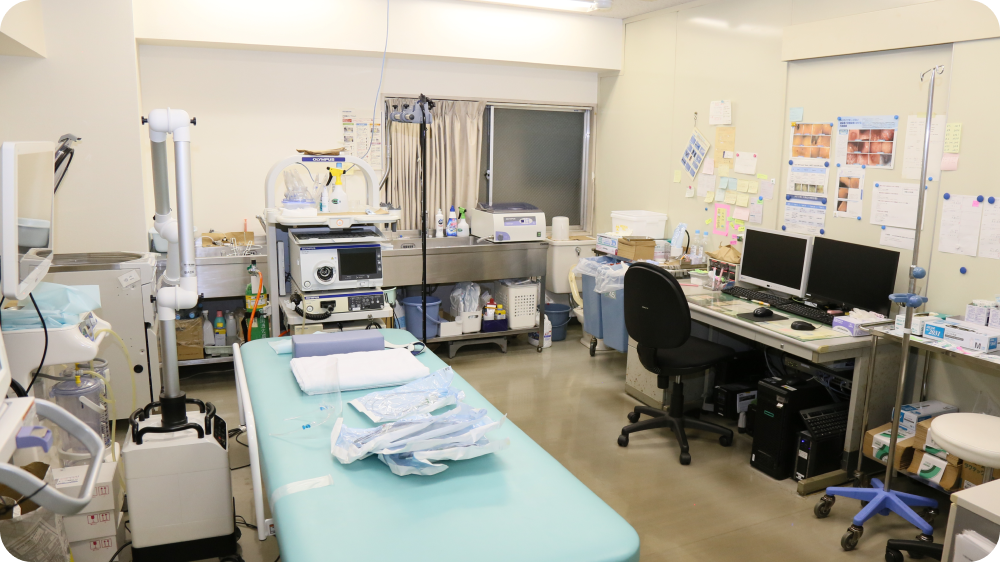 検査時は鎮痛薬や鎮静薬を使用し、不安や苦痛を和らげ、ほとんど眠ったような状態でリラックスして検査を受けられる環境を整えています。リラックスしていないと胃や腸が萎縮してしまうので、正確な診断が難しくなってしまうのです。