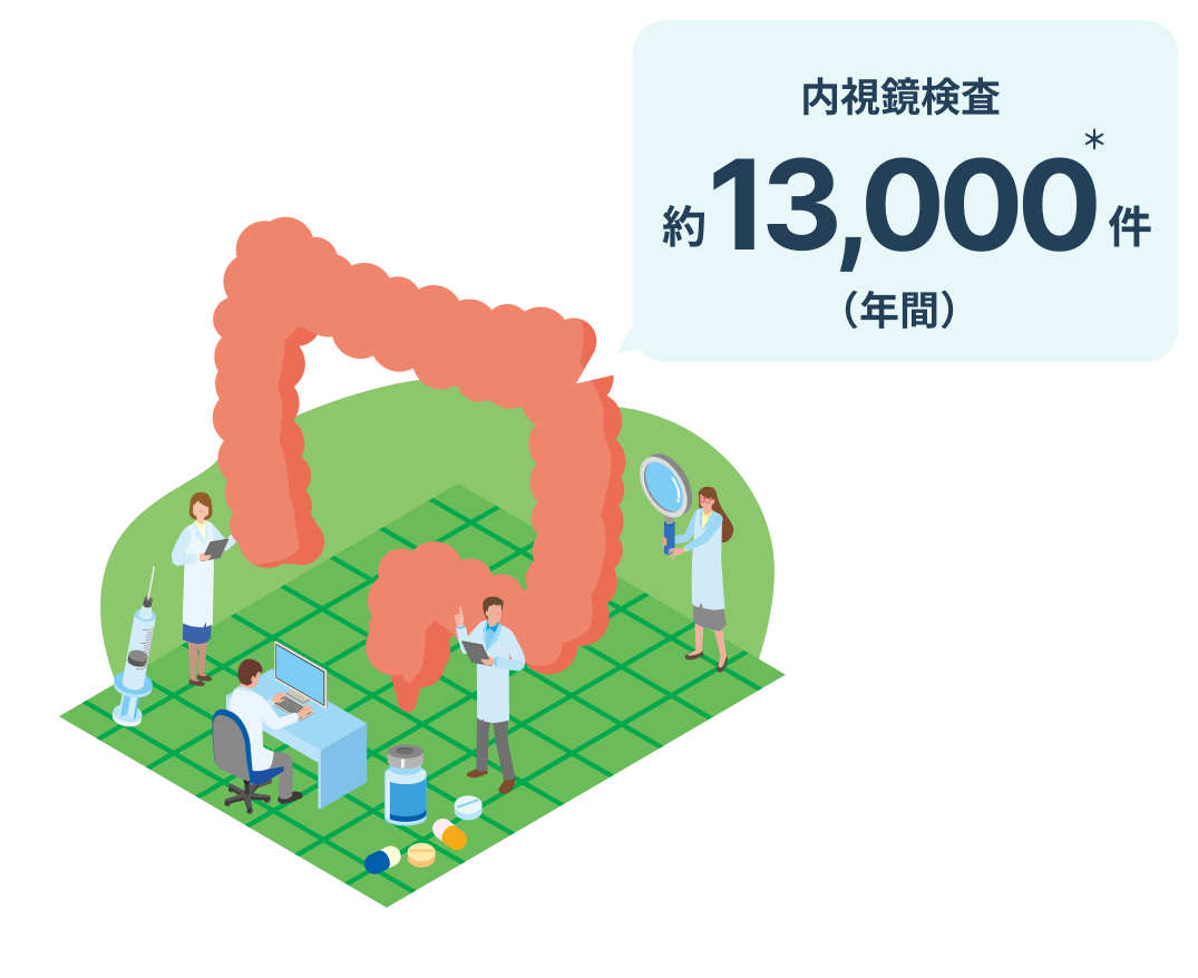 当クリニックでは、年間で約13,000件*の内視鏡検査を行っています。