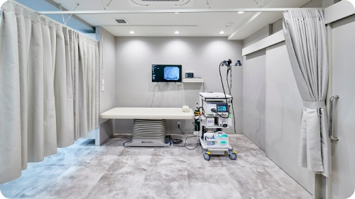 内視鏡検査の前処置のためにパーソナルソファを置いた半個室の準備室を設置しています。検査前に必要な下剤の服用や、そのほかの前処置を行うことができます。さらに、準備段階からスタッフが患者さんに寄り添い、不安や疑問がある場合には迅速に対応できる体制を整えています。内視鏡検査を初めて受ける患者さんも不安なく準備を進めていただけるようなサポートを大切にしています。