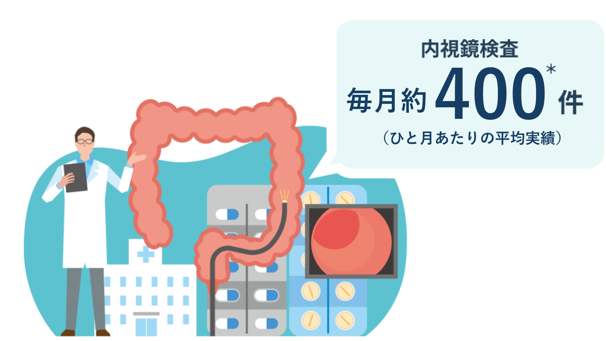 当クリニックでは、ひと月あたりの平均でおよそ400件*の内視鏡検査を行っています。