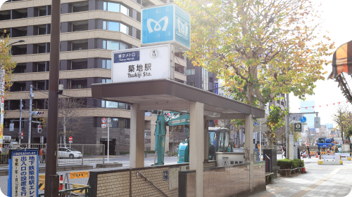 東京メトロ日比谷線 築地 3b出口、1番出口 徒歩2分 東京メトロ有楽町線 新富町 4番出口 徒歩5分 都営大江戸線 築地市場 A1出口 徒歩6分 |