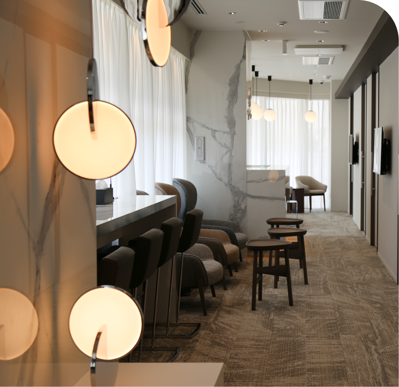 当クリニックは、従来の消化器内視鏡検査のイメージを「ガラリと変える」ことができるような内視鏡クリニックをめざして開院しました。内視鏡検査は「病気になったときに受けるもの」ではなく、「1年に一度、自分の健康と向き合うためのライフイベント」であるべき――そんな思いから、空間づくりにも徹底的にこだわっています。静かな音楽ややわらかな照明、シックなインテリアなどで快適さを提供し、「またここで検査を受けたい」「まるで非日常のひとときだ」と感じていただけるよう努めています。プライバシーにも配慮した前処置を行う個室や検査後のリカバリー室、休憩できるラウンジなどで、検査前後の時間を“癒し”の時間にしていただきたいです。