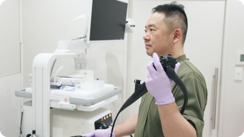 患者さんの精神的・肉体的負担をできる限り抑えた検査を心がけています。鎮静薬を使用し眠っている間に検査を実施したり、炭酸ガス送気装置の使用により検査後のお腹の張りを抑えたりといった工夫を行っています。また精度にもこだわり、リスクを見落とさずに必要な処置はその場で行うようにするなど、早期発見・早期治療に努めています。