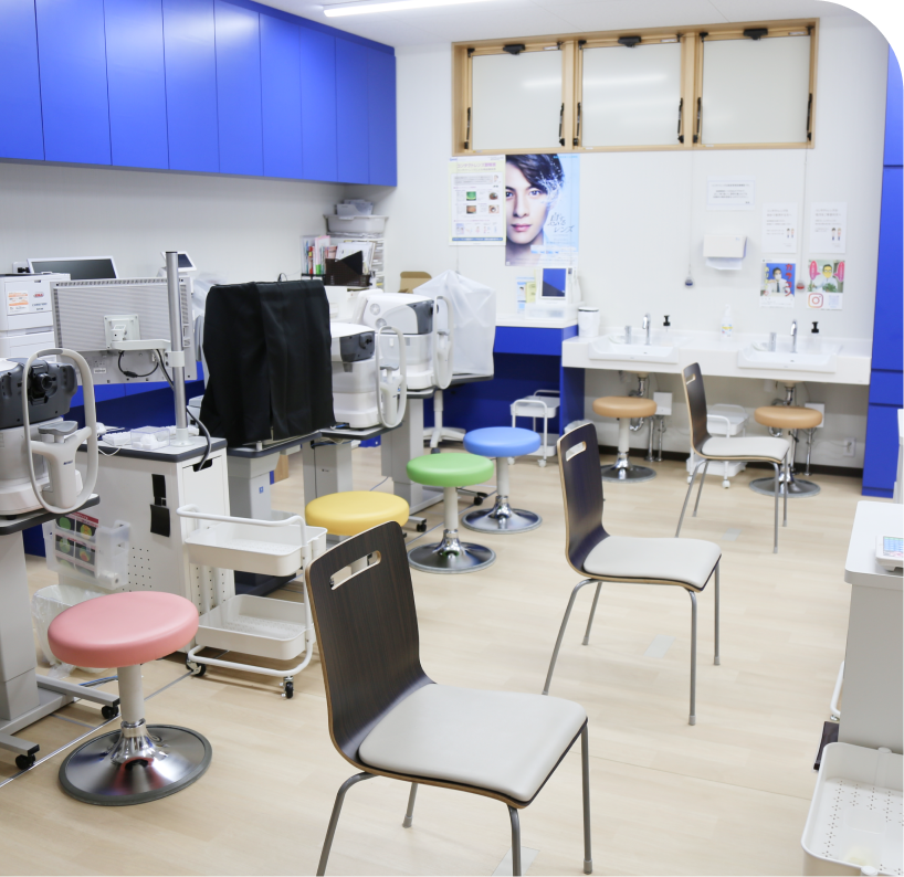 院内は車椅子やベビーカーで移動可能なバリアフリー設計で、キッズスペースやベビーベッドも完備。目の健康に不安があれば、お気軽にご相談ください。