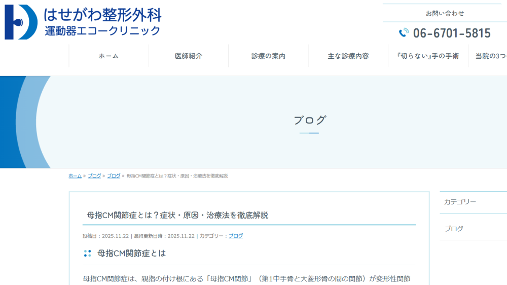 親指の付け根の関節がすり減って変形し、痛みや動かしにくさが生じる病気です。当クリニックでは、症状や進行の程度に応じて、PRP治療(再生医療)*や手関節鏡を用いた低侵襲な治療を行っています。