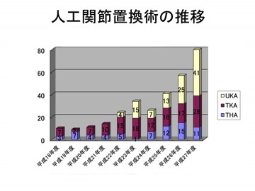 整形外科手術は骨折への手術を中心に年間300例におよび、年々増加傾向にあります。なかでも人工関節置換術は2006年から2015年の10年間で約8倍(10件から80件)に増加しました。MRIやCT、内視鏡、透視撮影、超音波検査、DEXA(骨密度検査)などの検査にも対応しており、緊急時や土日祝日の検査も行うことができます。この結果、当院での画像検査実施数も急激に増加しています。