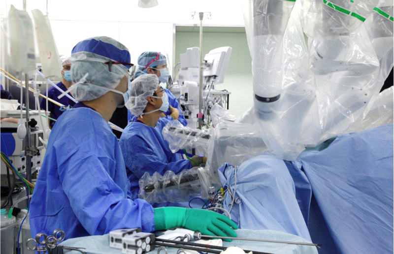 2016年1月には、手術支援ロボットによる消化器がん手術(胃がん・大腸直腸がんの手術)を行いました。2016年度の実績は、胃がん9例、直腸がん26例と徐々に症例数を増やしています。これからは消化器のみならず泌尿器科・産婦人科でもこの手術支援ロボットを利用し、前立腺がんや子宮頚がんの手術にも積極的に利用していこうと考えています。