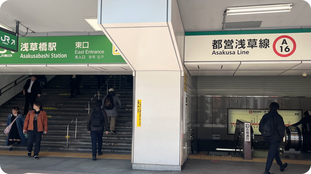 JR中央・総武線 浅草橋 西口 徒歩5分 都営浅草線 浅草橋 A3出口 徒歩7分 JR総武本線 馬喰町 C4出口から徒歩2分 徒歩7分 都営新宿線 馬喰横山 C4出口から徒歩2分 徒歩8分 |