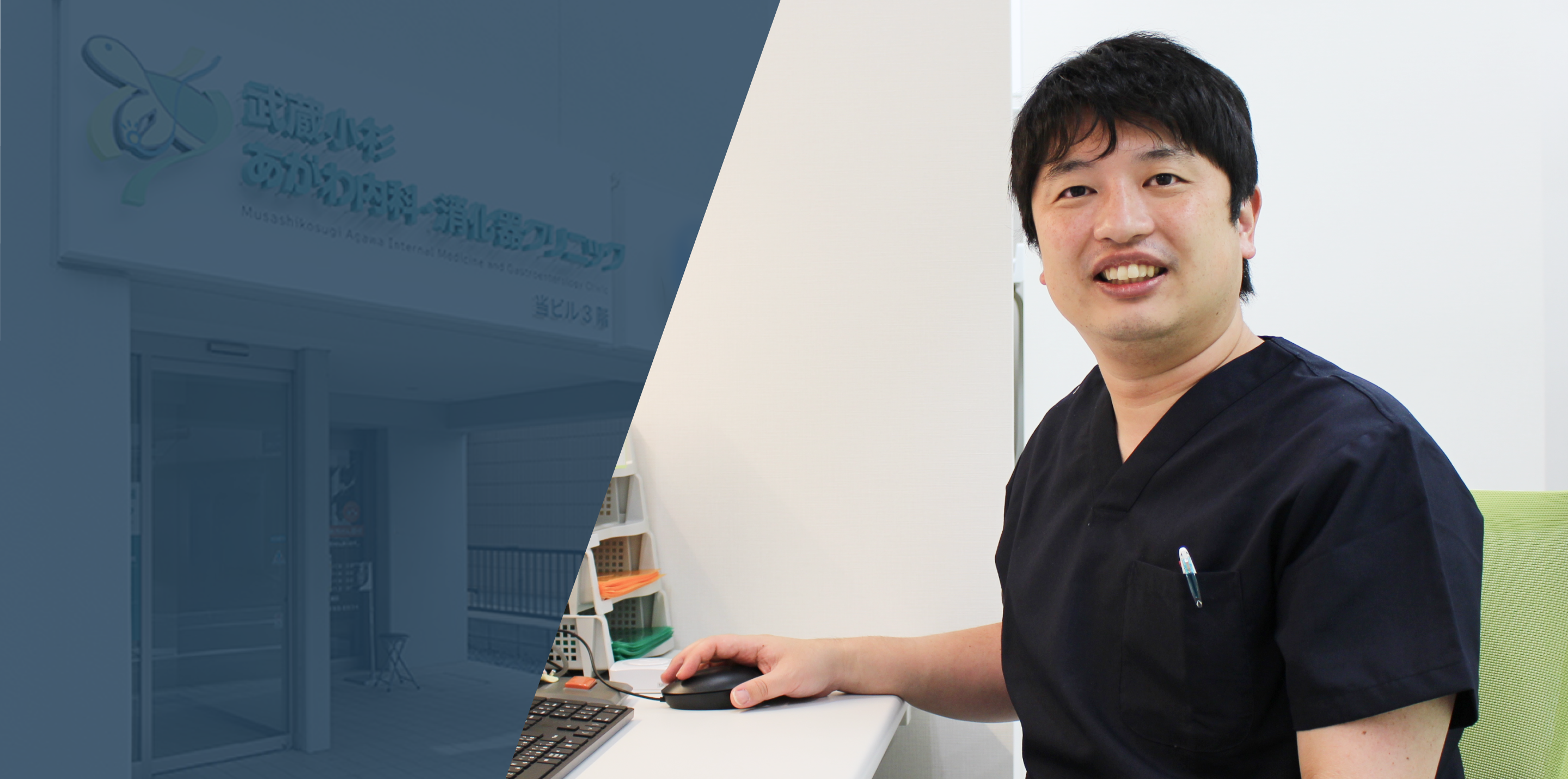 武蔵小杉あがわ内科・消化器クリニックは、学生時代から親しんできた武蔵小杉・新丸子の地域で、これまで培った経験を生かした医療を届けたいという思いから開院しました。