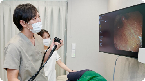 たとえばお尻からの出血があり、たとえばお尻の出血では、患者さん自身は痔が原因だと思っていても、検査をすると直腸がんや結腸がんが発見される可能性もあります。こうした背景から、お尻からの出血に対して多角的な診断ができる環境を整え、患者さんの健康を守ることに努めています。