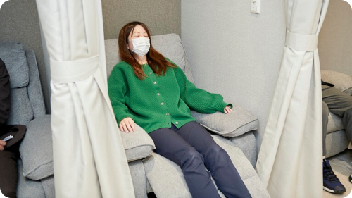 患者さんがリラックスして検査や診療を受けられるよう、個室の準備室とリカバリールームを完備しています。リカバリールームは、カフェのように温かみのある空間で検査後の時間を快適に過ごせるよう、座席の位置や椅子などにもこだわっています。それだけではなく、院内全体が病院らしさを感じさせない設計となっており、患者さんに安心感と心地良さを感じていただけるようにしています。