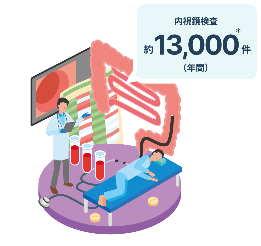 当院の院長が2022年11月に開院した石川消化器内科・内視鏡クリニックでの実績として、1年間で約13,000件*の内視鏡検査を実施しています。