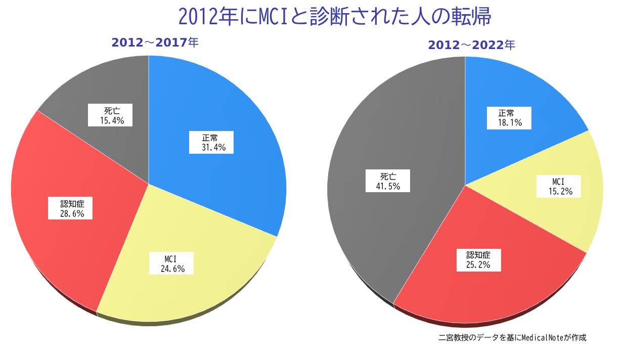 さらに、2012年から2022年まで追跡可能だった171人の調査結果は、正常認知機能に戻っていた人は31人(18.1%)、MCIの人が26人(15.2%)、認知症に進んだ人が43人(25.2%)、死亡が71人(41.5%)となった。